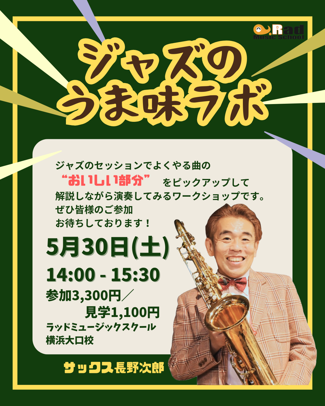 バークリー音楽大学卒サックス奏者、じろう先生が丁寧に教えてくれます♪